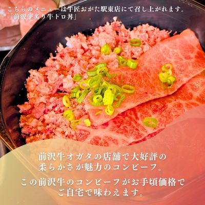 前沢牛オガタ直営レストラン「牛匠おがた」でもお召し上がり頂ける大人気メニュー「牛トロ丼」にも使用しております。
